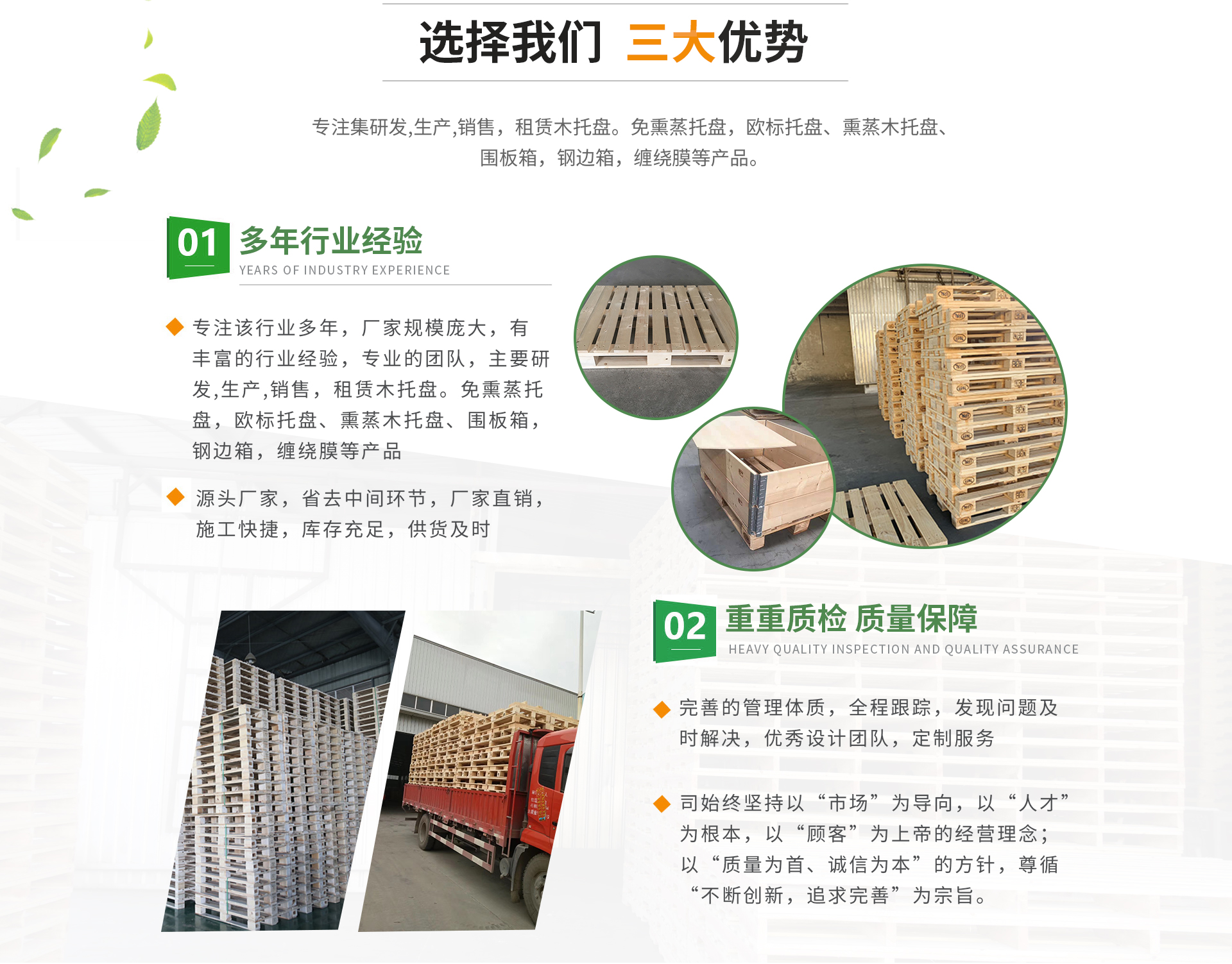 蕪湖奔騰包裝股份有限公司坐落于滬渝高速灣沚出口處3公里,距離灣沚高鐵站6公里,蕪宣客運機場5公里,交通十分便利。我公司是專注集木托盤研發(fā),生產(chǎn),銷售,租賃的綜合服務(wù)商。本公司生產(chǎn)的免熏蒸托盤,歐標托盤、熏蒸木托盤、圍板箱,鋼邊箱等產(chǎn)品遠銷海內(nèi)外。公司本著“以質(zhì)量求生存,以信譽謀發(fā)展,以服務(wù)拓出路”的服務(wù)經(jīng)營理念;重視產(chǎn)品質(zhì)量和服務(wù),為用戶著想。根據(jù)客戶需求,及時送貨。公司始終堅持以“市場”為導向,以“人才”為根本,以“顧客”為上帝的經(jīng)營理念;以“質(zhì)量為首、誠信為本”的方針,尊循“不斷創(chuàng)新,追求完善”為宗旨。本著生產(chǎn)廠家,減少中間流通環(huán)節(jié)的原則,讓利于每位客戶朋友。我們的產(chǎn)品價格合理,質(zhì)量過硬,真誠歡迎各方客商前來業(yè)務(wù)洽談與合作。